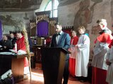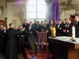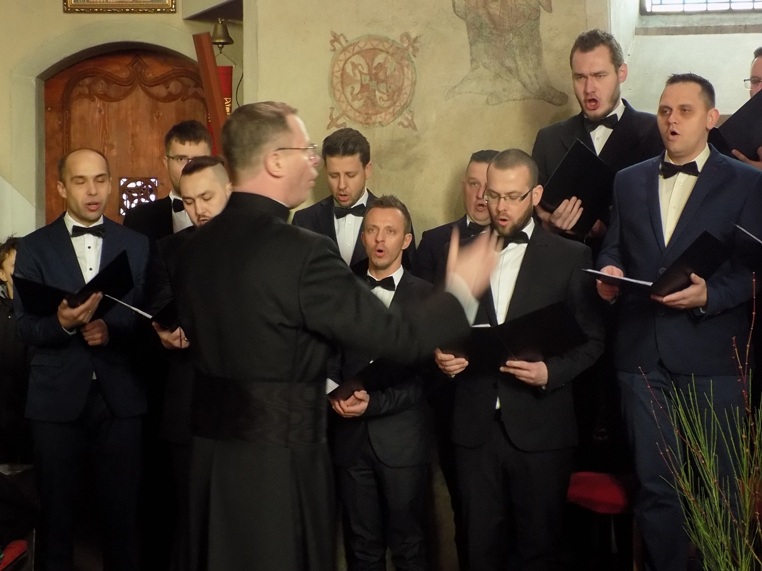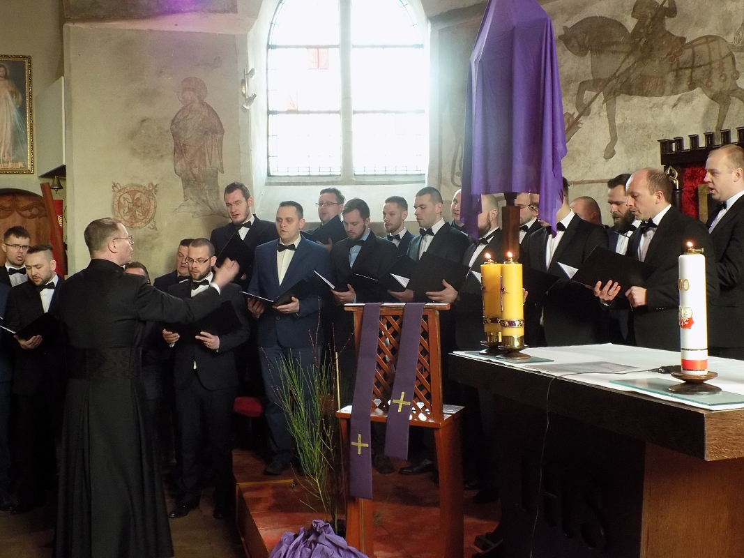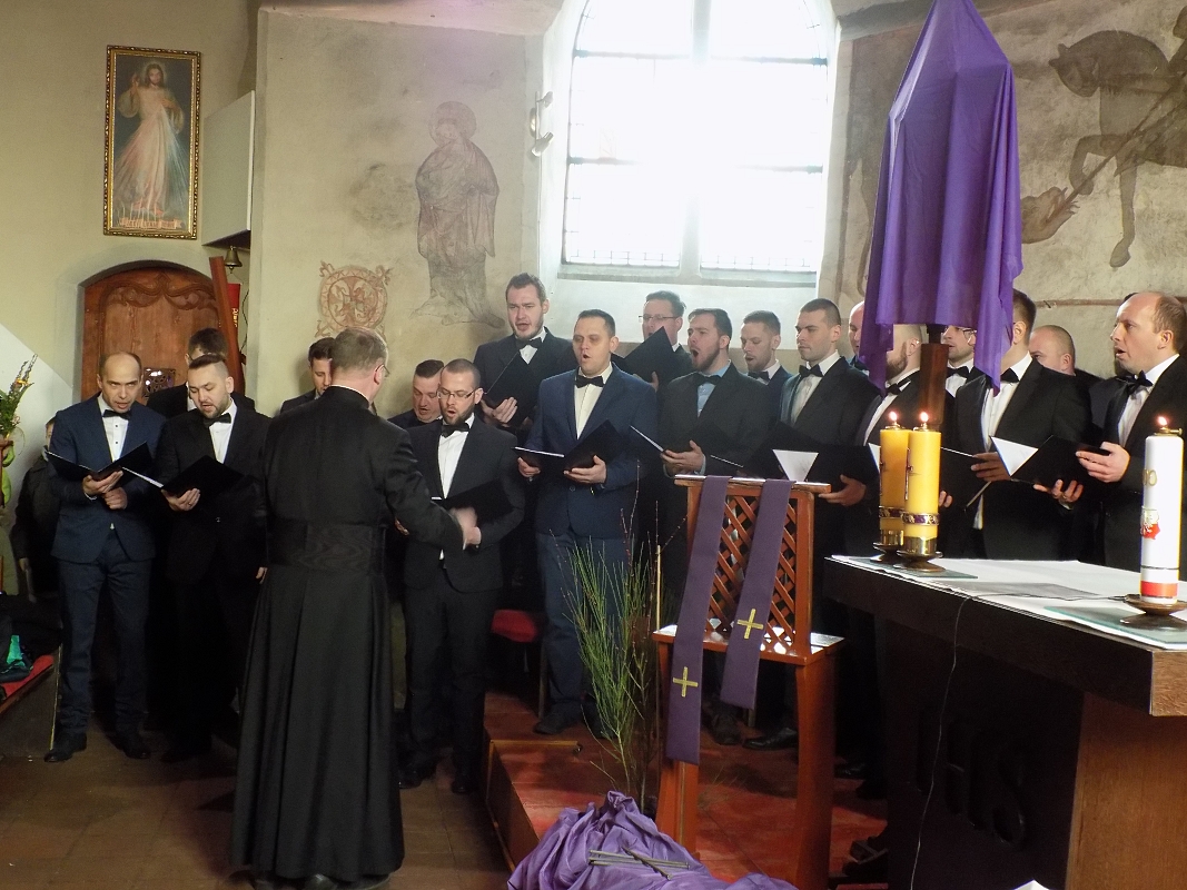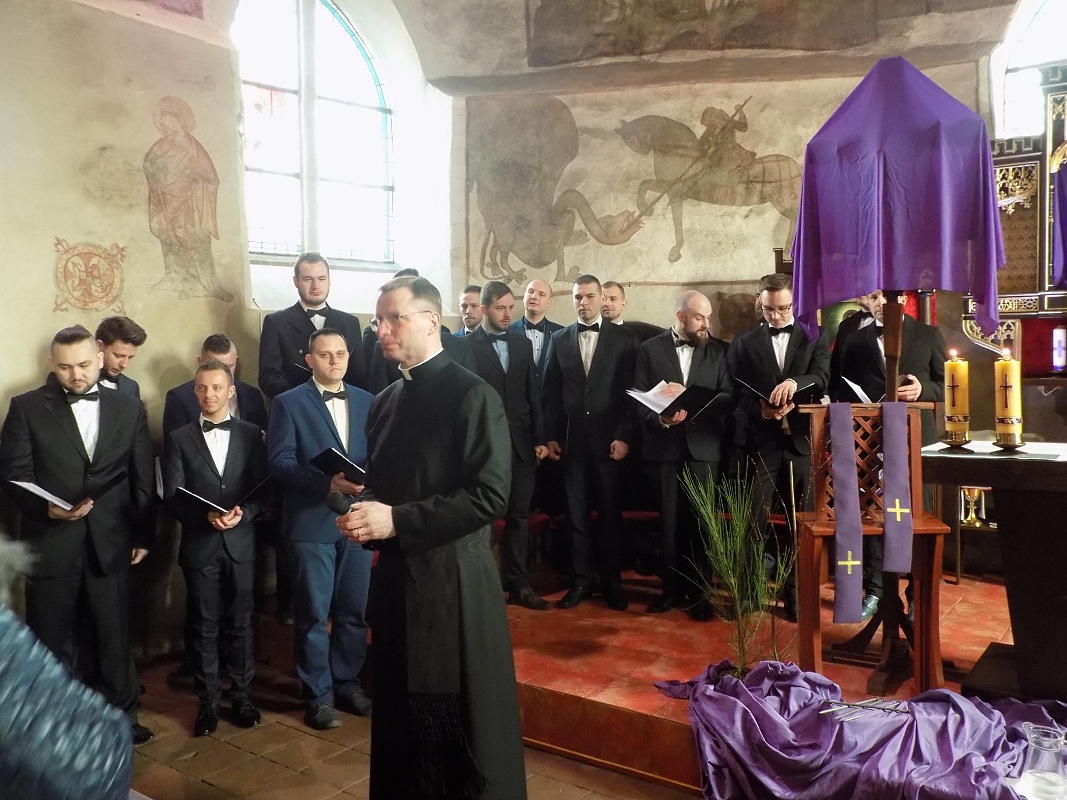 W Grzędzicach nasi Goście odczytali z podziałem na role PASJĘ wg św. Marka, wzięli udział we Mszy św., a po jej zakończeniu dali krótki koncert przeplatany historią powstania i działalności.