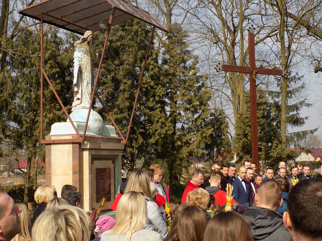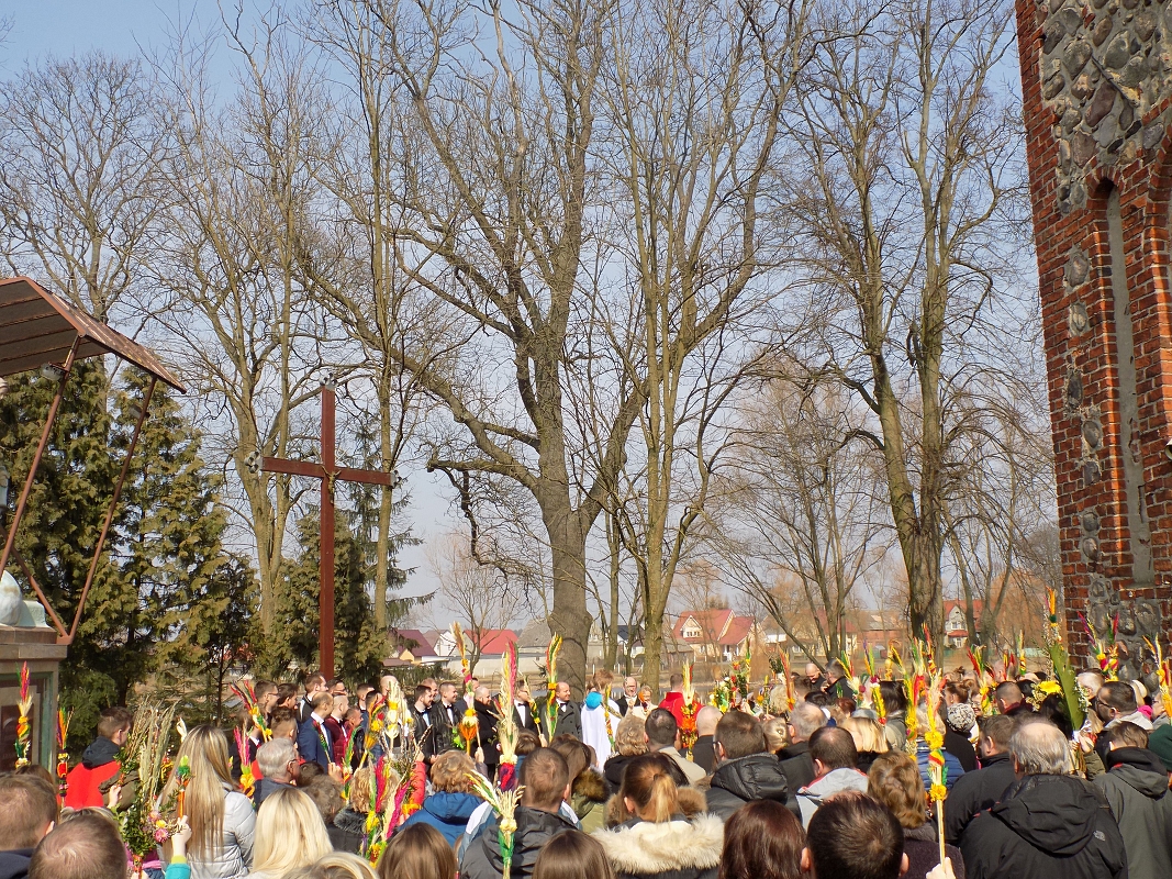 Mszę św. w Niedzielę Palmową rozpoczęliśmy jak zawsze na placu kościelnym Tam została odczytana Ewangelia przypominająca wjazd Pana Jezusa do Jerozolimy. Poświęciliśmy palmy i w uroczystej procesji weszliśmy do kościoła.