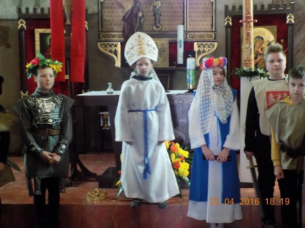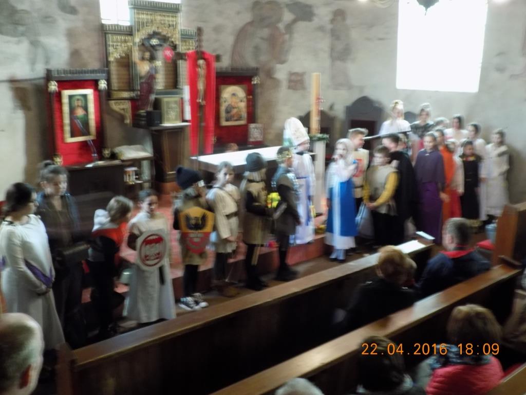 W piątek 22 kwietnia w kościele w Grzędzicach dzieci ze Szkoły Podstawowej im św. Jana Pawła II przedstawiły okolicznościowy spektakl, poświęcony 1050 rocznicy chrztu Polski.