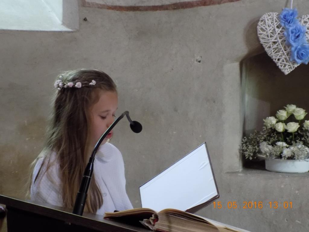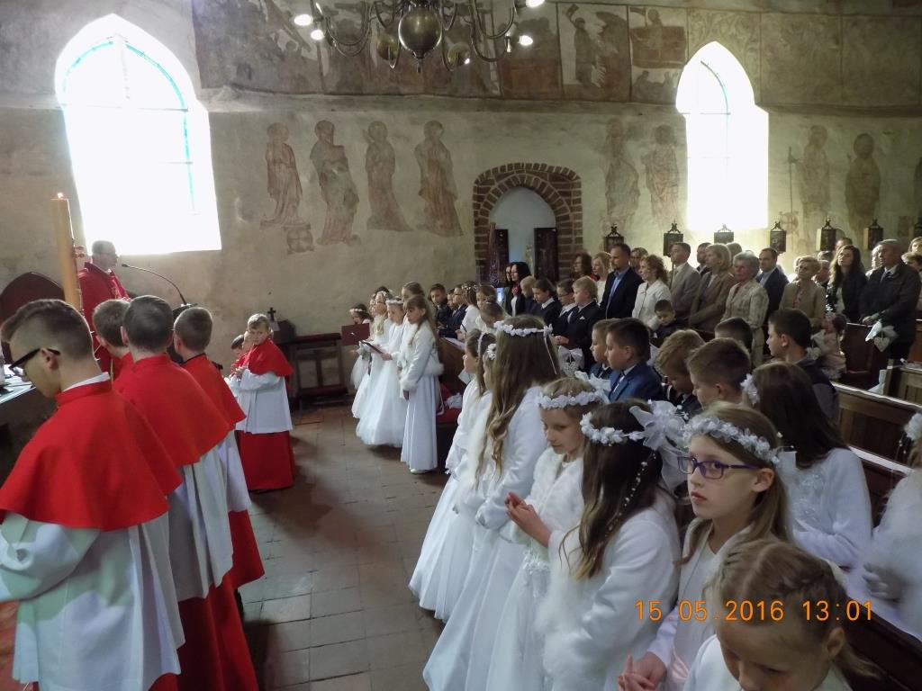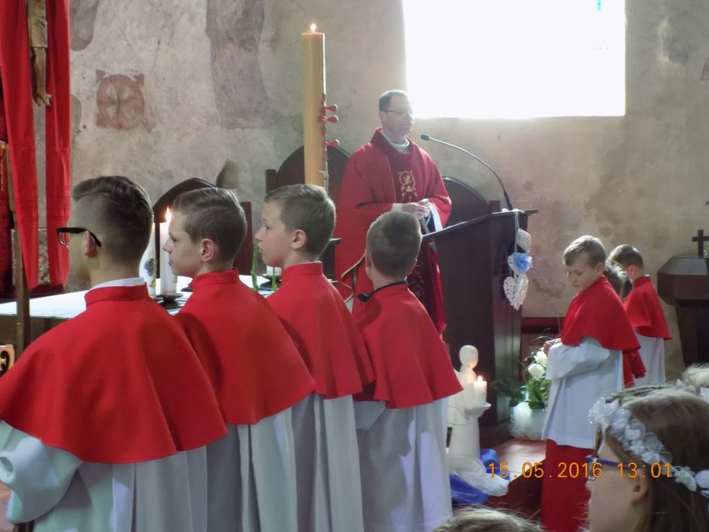 23 troje czwartoklasistów, w swoich ,,komunijnych strojach” zgromadziło się na Mszy św. o godz. 13.00, aby Panu Bogu podziękować, że już rok mogą w pełni uczestniczyć we Mszy św.