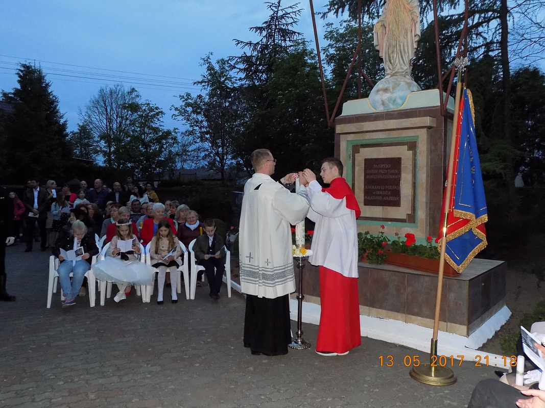 Setną rocznicę objawień Matki Bożej w Fatimie uczciliśmy w naszej wspólnocie bogactwem przeżyć religijnych. W godzinach poranny Klasy III A i III B z naszej Szkoły Podstawowej im św. Jana Pawła II przystąpiły po raz pierwszy do I Komunii św. Po południu, młodzież naszej parafii otrzymał z rąk ks. Biskupa Bronisława Bernackiego sakrament Bierzmowania, a o 21 00 licznie zebrani wierni, na placu kościelnym w Grzędzicach, odprawili uroczyste Nabożeństwo Fatimskie zakończone procesją.